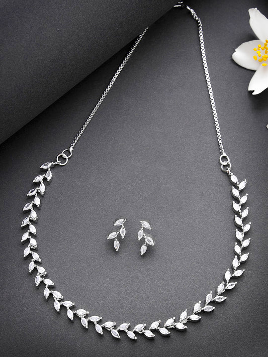 Silver-Plated Leaf American Diamond-Studded Jewellery Set