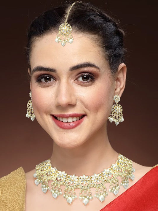 Gold-Plated Artificial Stones Studded Jewellery Set With Maang Tika