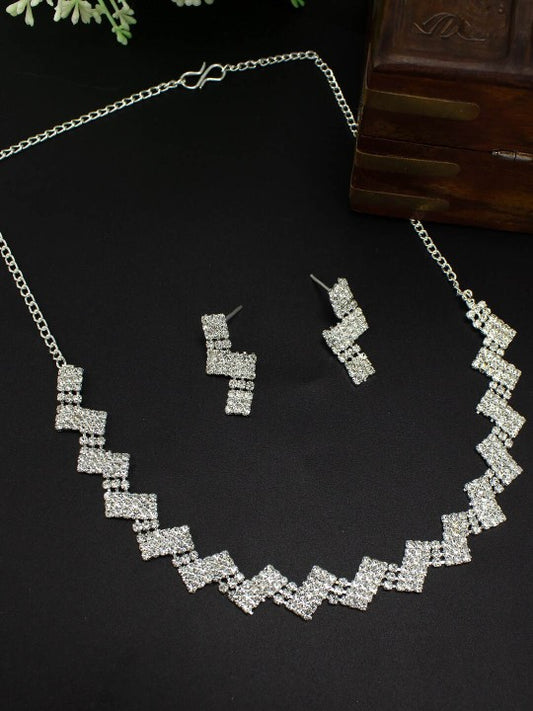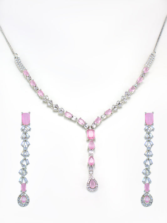 Silver Plated Cubic Zirconia Studded Jewellery Set