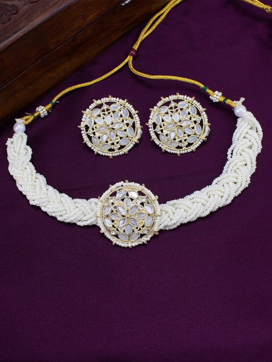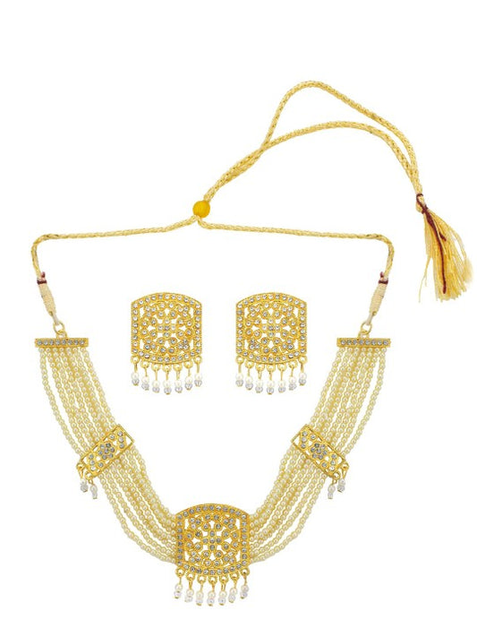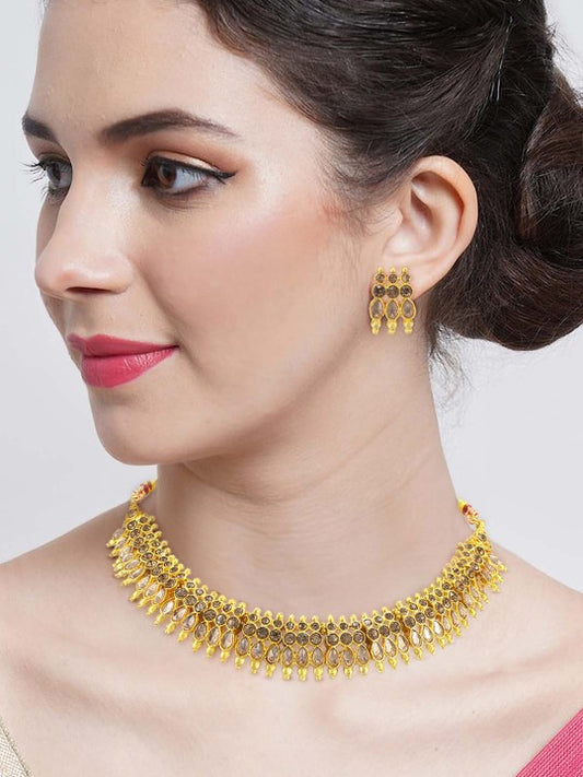 Gold Plated Stones Studded & Beaded Jewellery Set