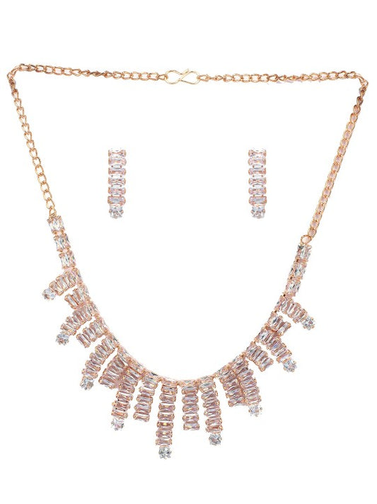 Rose Gold Plated Cubic Zirconia Studded Jewellery Set
