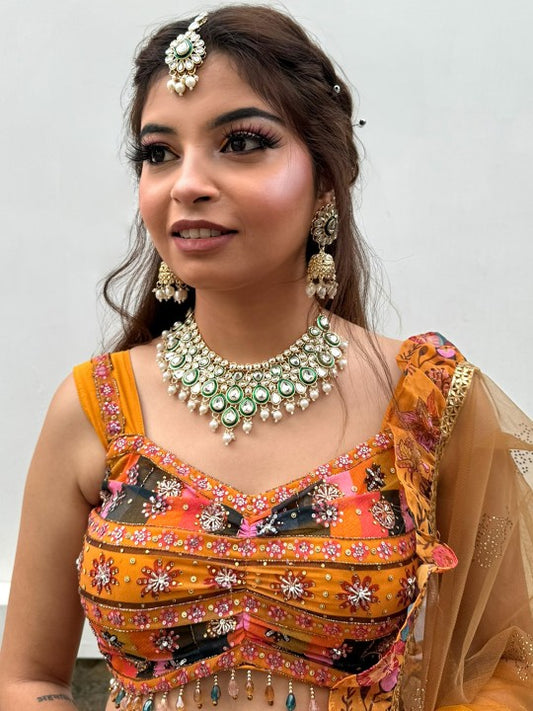 Gold Plated Artificial Stones and Beads Jewellery Set With Maangtika