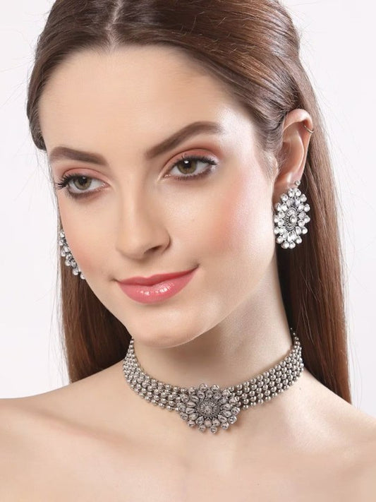 Silver Plated Stone Studded Jewellery Set