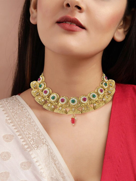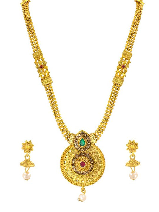 Gold-Plated Stone Studded Traditional Jewellery Set