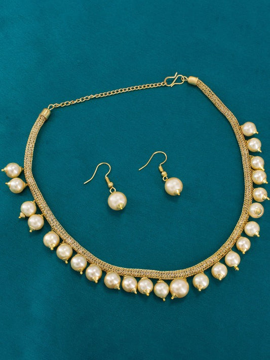 Gold-Plated Cubic Zircon-Studded & Pearl-Beaded Jewellery Set