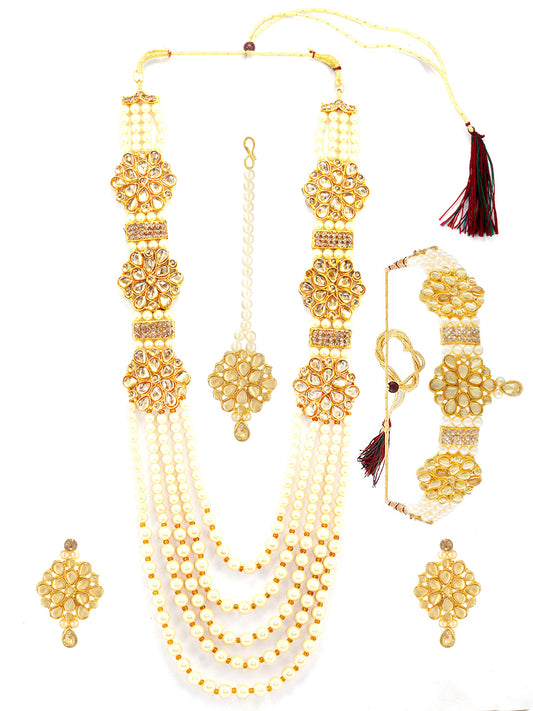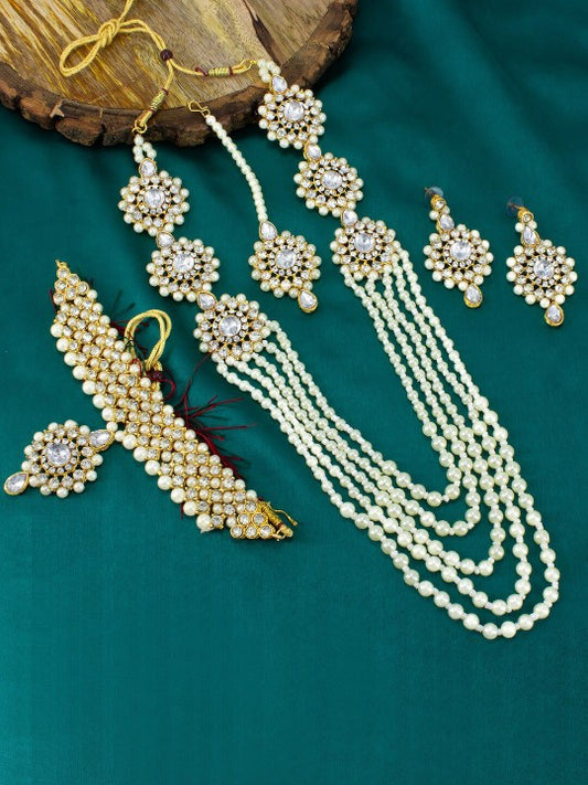Gold-Plated Kundan Studded & Beaded Statement Jewellery Set