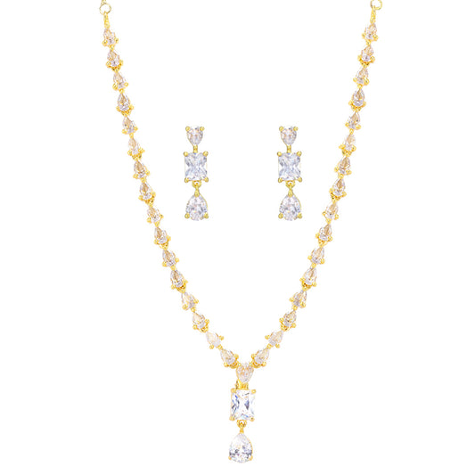Gold Plated Teardrop Shaped American Diamond Studded Jewellery Set