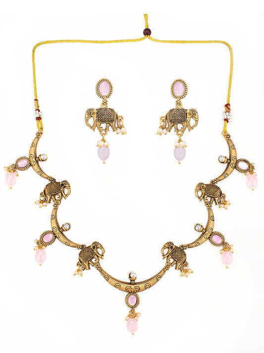 Gold Plated Kundan Studded Elephant Shaped Jewellery Set