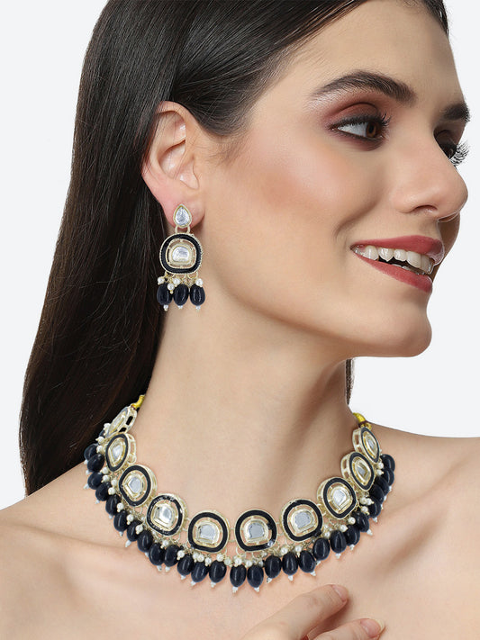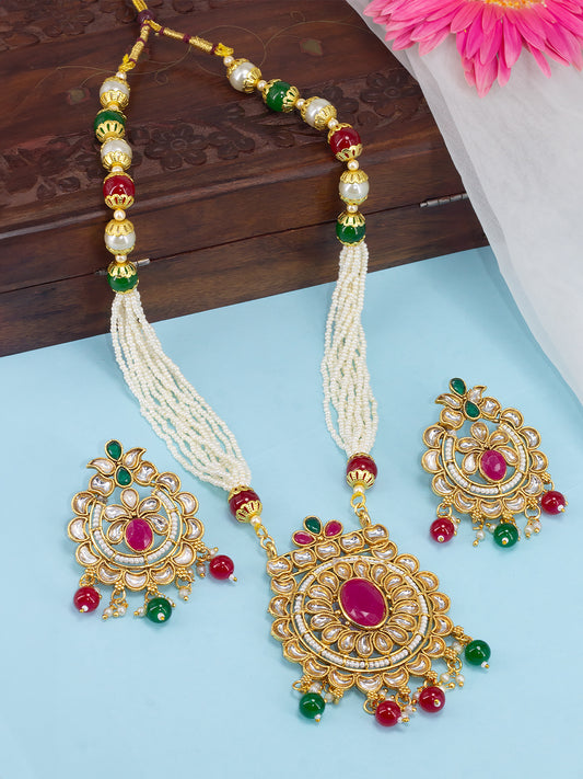 Gold Plated Stones Studded & Beaded Jewellery Set