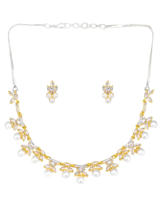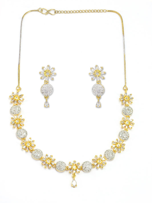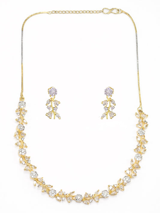 Gold Plated Floral American Diamond Studded Jewellery Set
