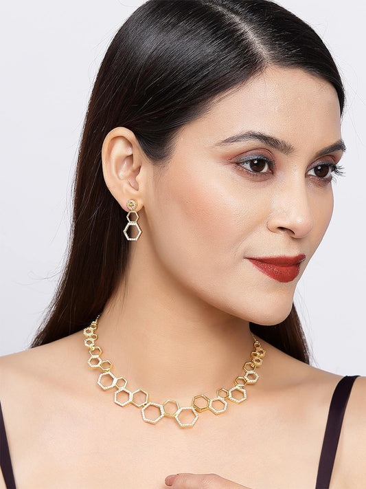 Gold Plated Geometric Shaped American Diamond Studded Jewellery Set