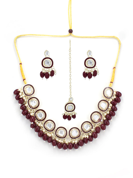Gold-Plated Kundan-Studded & Beaded Jewellery Set