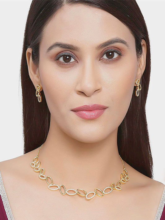 Gold Plated Oval Shaped American Diamond Studded Jewellery Set