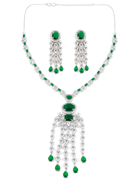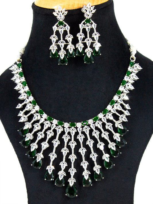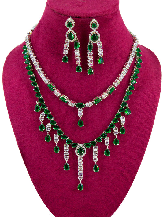 Silver Plated Green AD Designer 2 Layer Cocktail Jewellery Set
