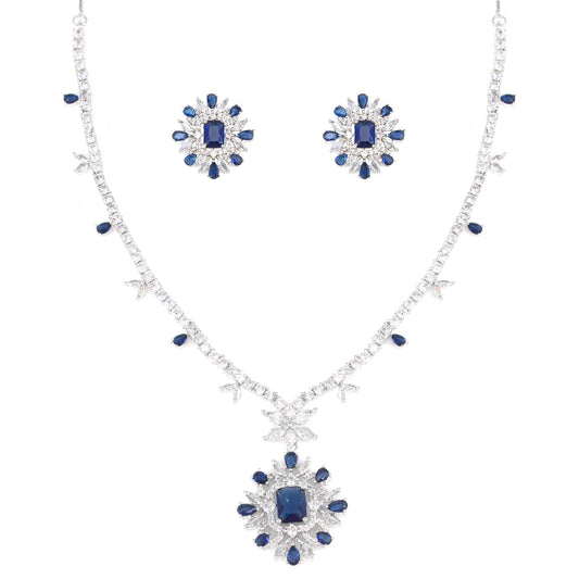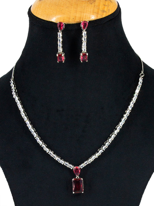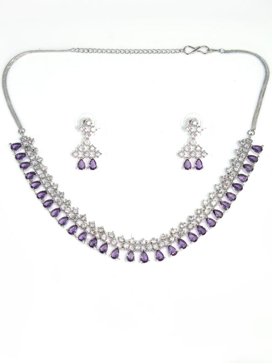 Silver Plated Purple AD Sleek Designer Jewellery Set