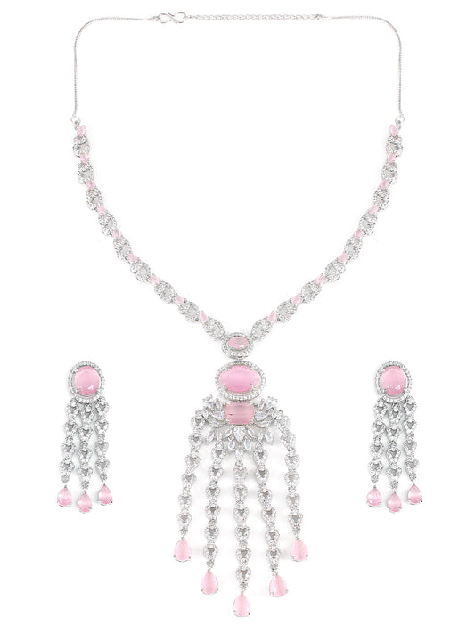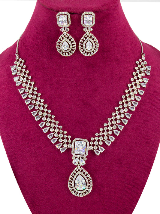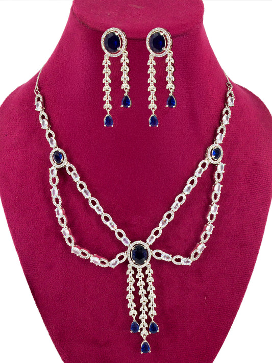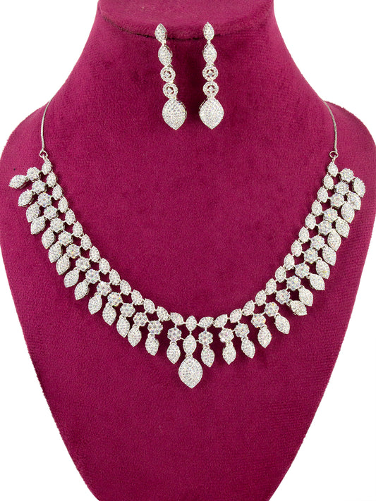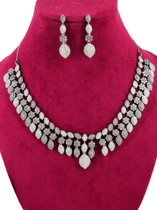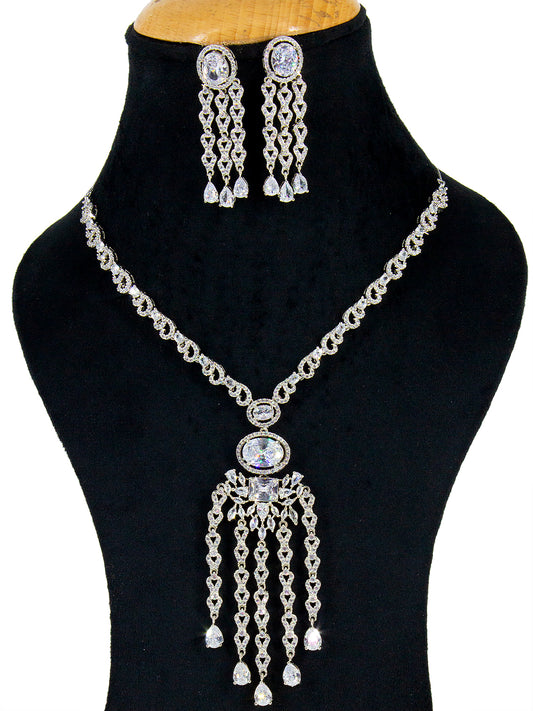 Silver Plated 3 Layer Cocktail AD Designer Jewellery Set
