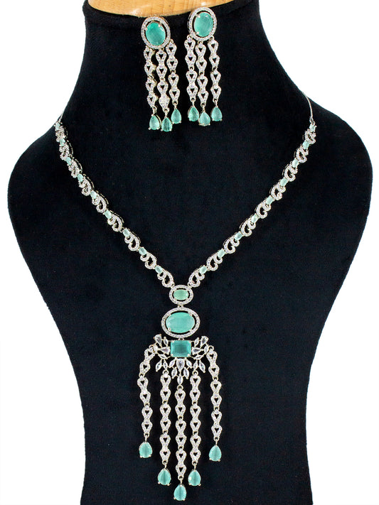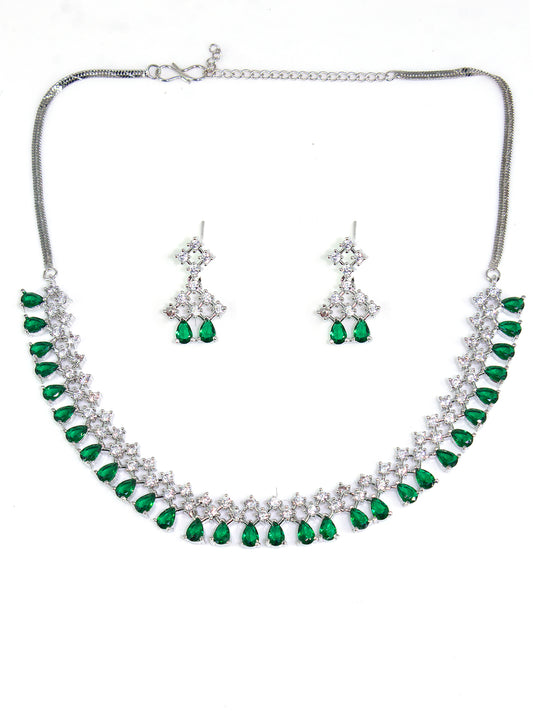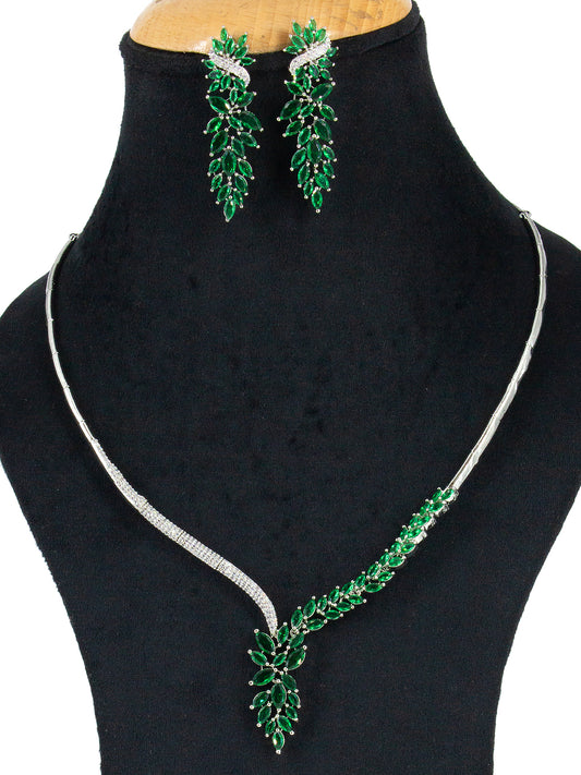 Silver Plated Green AD Sleek Designer Jewellery Set