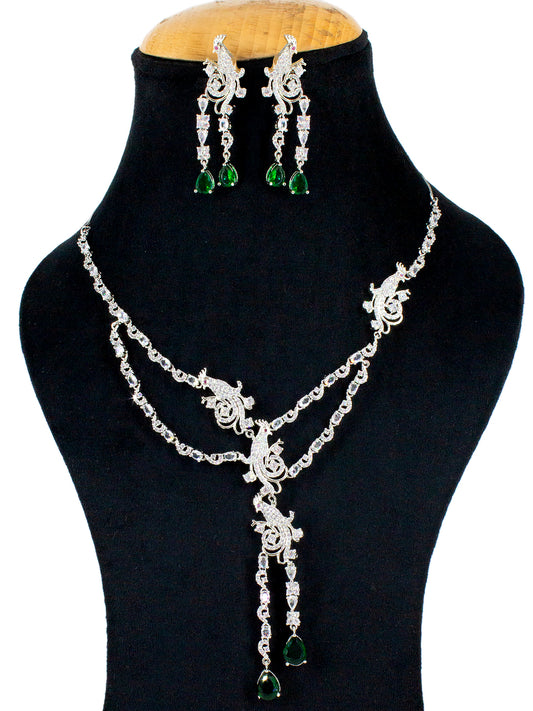Silver Plated Green AD Peacock Statement Jewellery Set