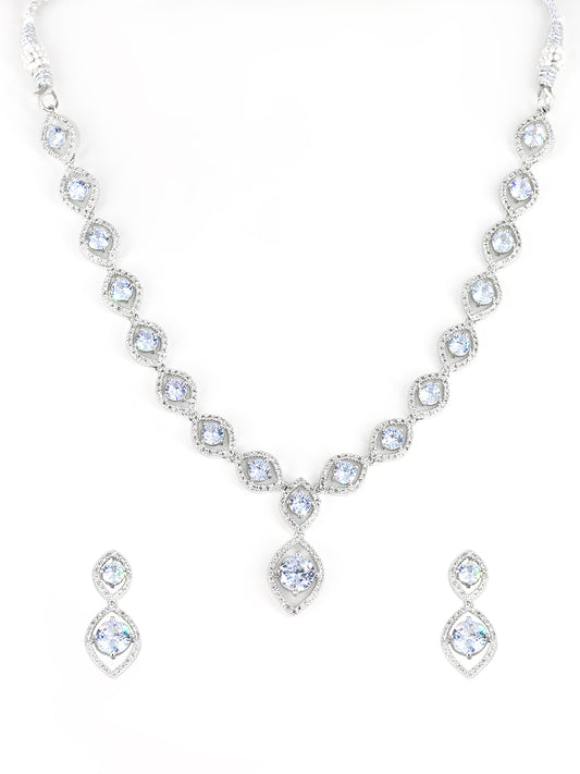 Rhodium-Plated Blue American Diamond Studded Jewellery Set