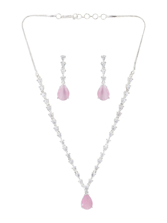 Green Rhodium-Plated American Diamond Studded Jewellery Set