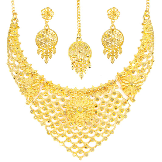 American Diamond Floral Design Purple Drop Jewellery Set For Women And Girls