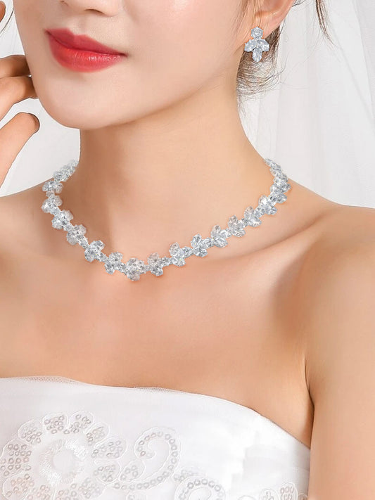 Red American Diamond Tear Drop Leaf Party Jewellery Set