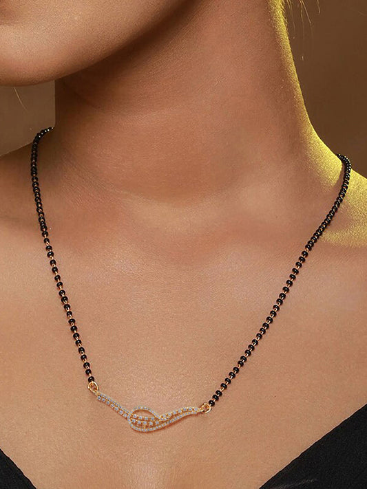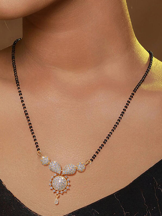 Gold Plated Black Beaded & American Diamond Mangalsutra