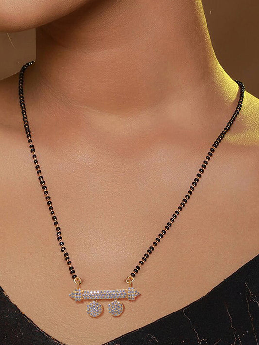Gold Plated Black Beaded & American Diamond Mangalsutra
