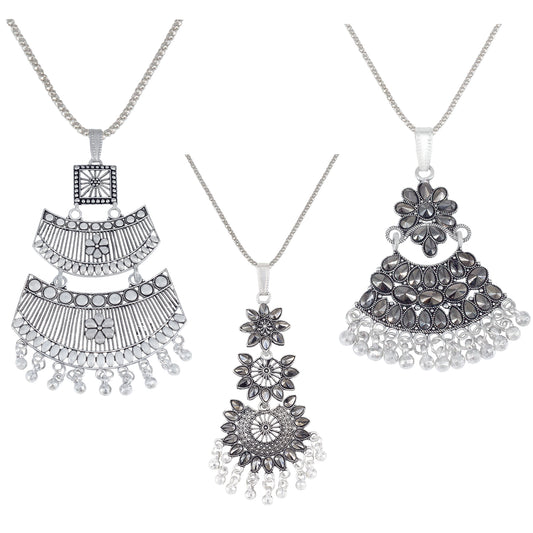 • PRIVIU Silver Pendant Necklace for Women Teardrop, Heart, Round AD Pendant for Girls (Set of 5)