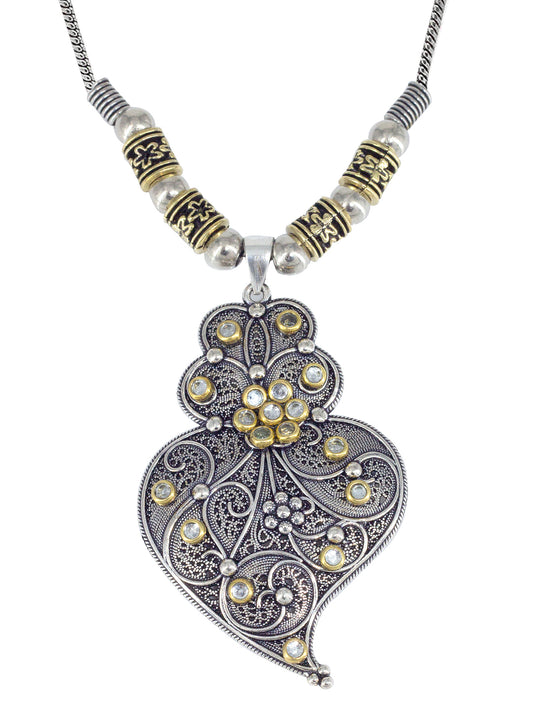 • Gold Plated American Diamond Floral Heart Magnate Trendy Necklace