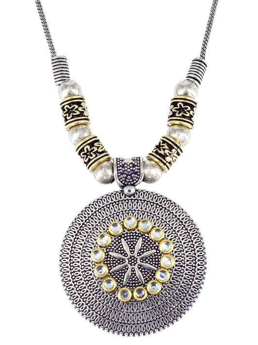 PRIVIU Silver Pendant Necklace for Women Teardrop, Heart, Round AD Pendant for Girls (Set of 5)