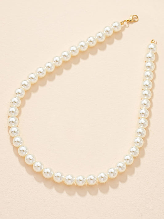 • Stainless Steel Gold Pearl Chain Necklace | Trendy Geometric Chain Necklace