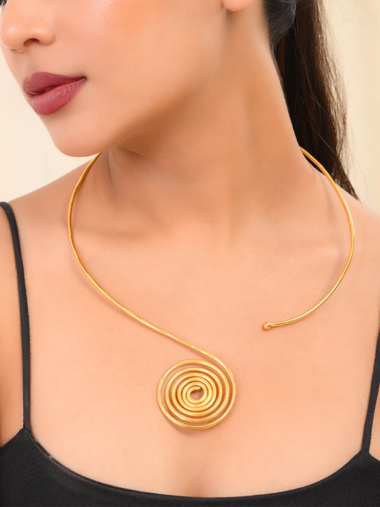 Serpent Gold Plated & Green Rhinestone Hasli Choker Necklace