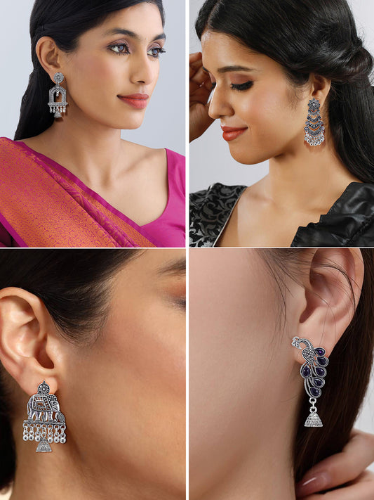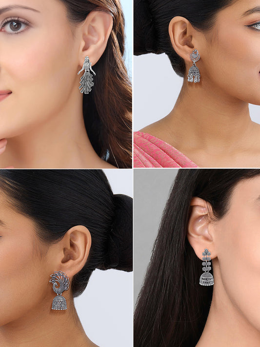 Set of 4 Floral, Peacock & Elephant Jhumki Earrings