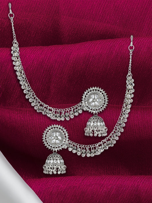 Bahubali Ear Chain 3 Layered with Small Pearl Beads