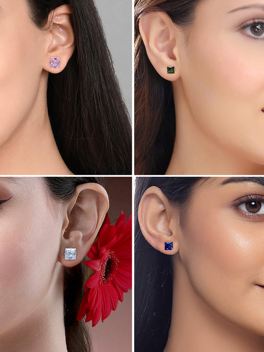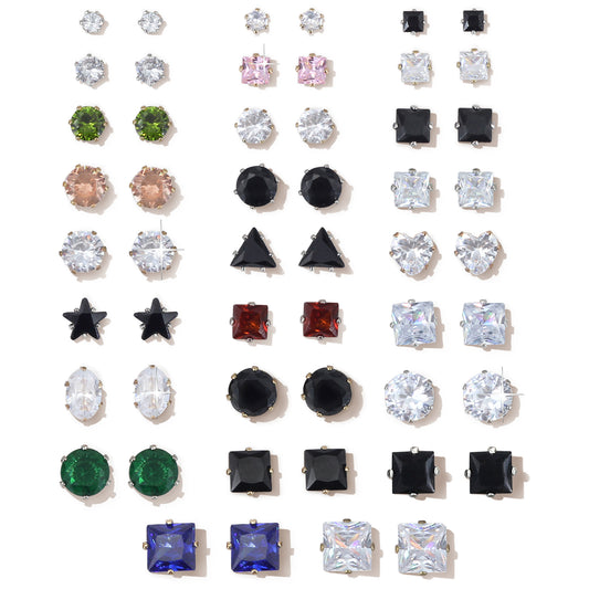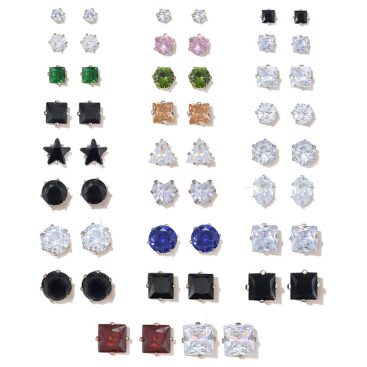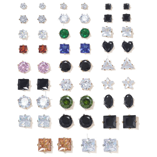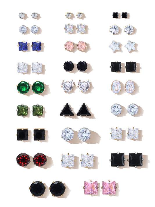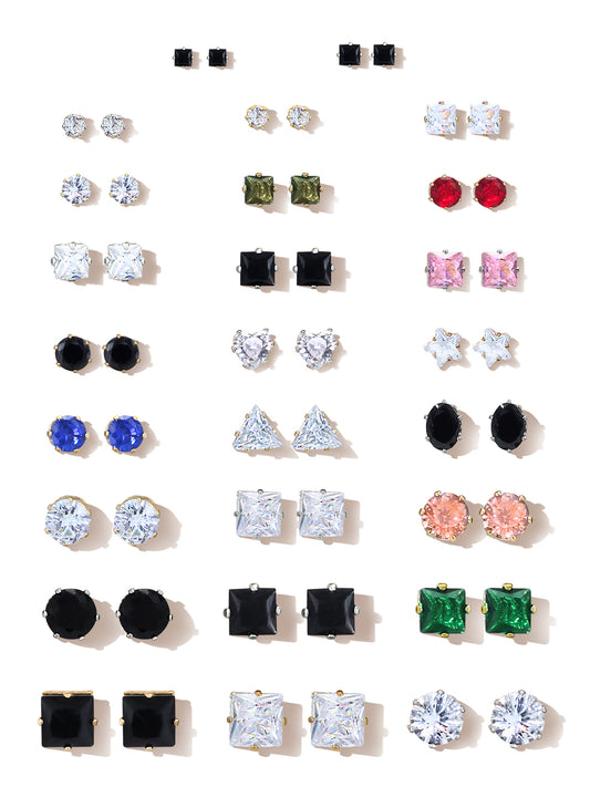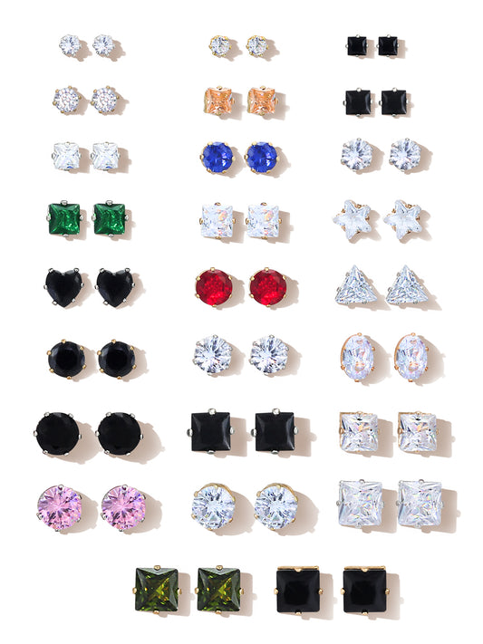 Pack of 26 Multicolour Geometric AD Stud Earrings