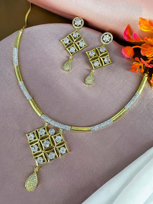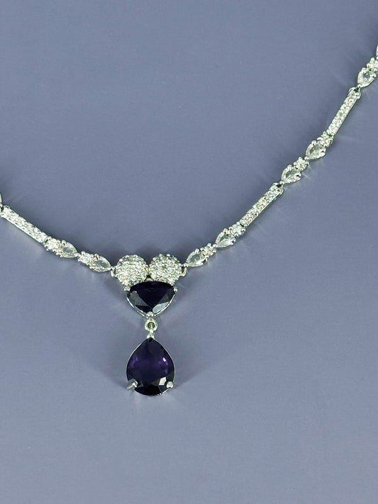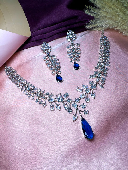 Silver Plated Blue American Diamond Statement Jewellery Set