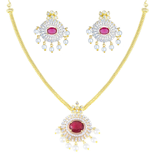 Gold Plated Ruby AD Faux Pearl Jewellery Set