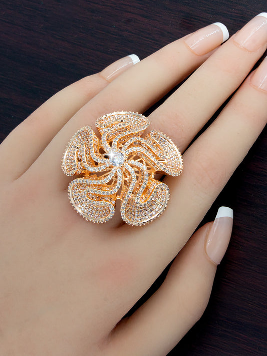 Rose Gold Plated AD Floral Cocktail Adjustable Ring