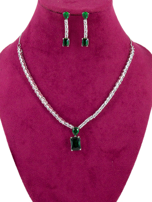 Silver Plated Green AD Minimal Jewellery Set