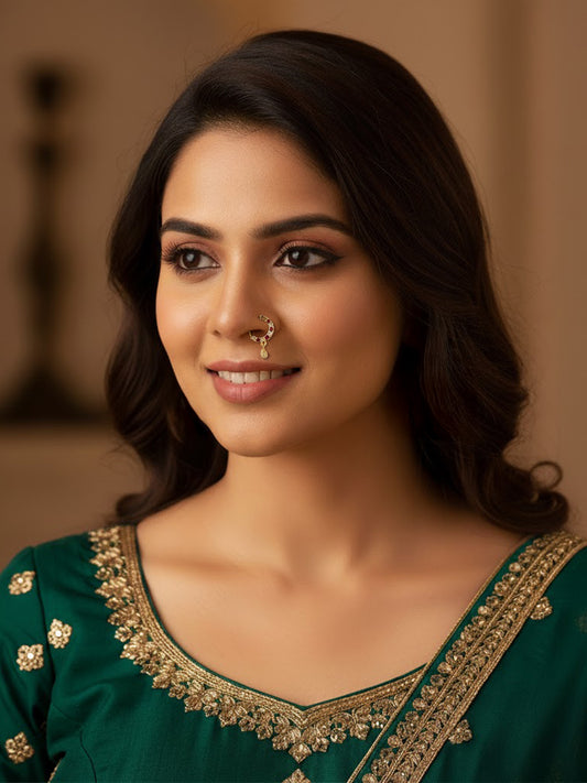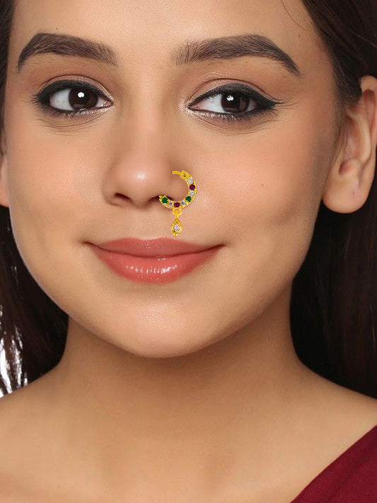 Gold Plated AD Maharashtrian Nose Ring for Women