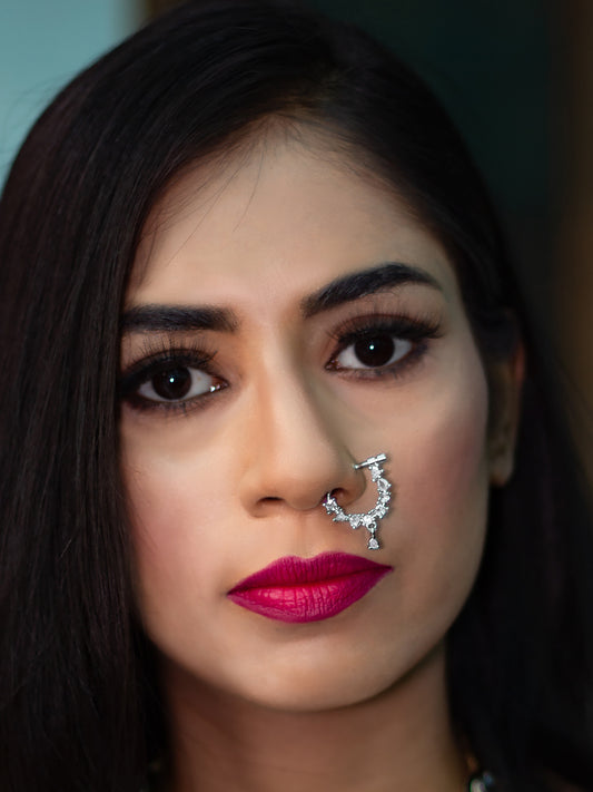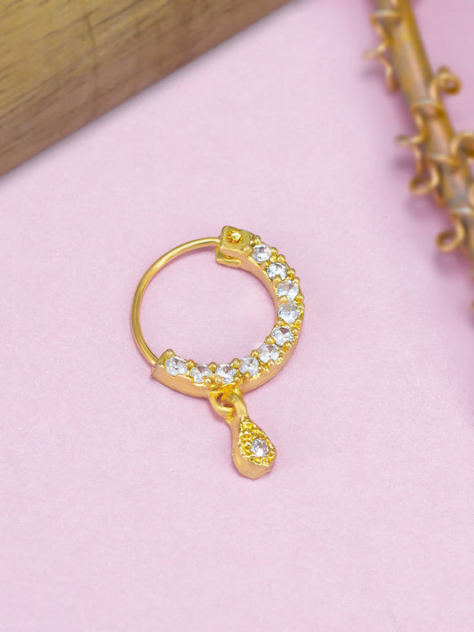 Gold Plated American Dimaond Drop Non-Piercing Nose Ring