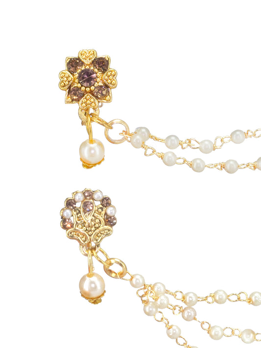 Set of 2 Gold Plated Artificial Stones & Beads Studded Chained Nosepin