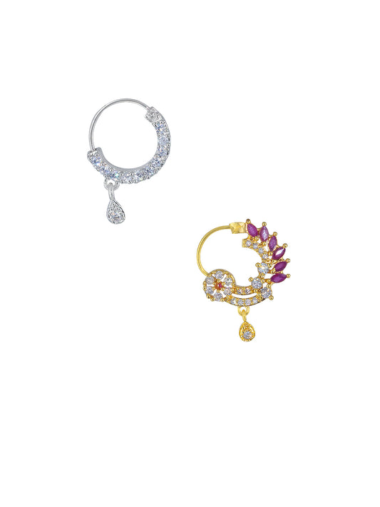 Set of Two Rhodium & Gold Plated American Diamond Nosepin