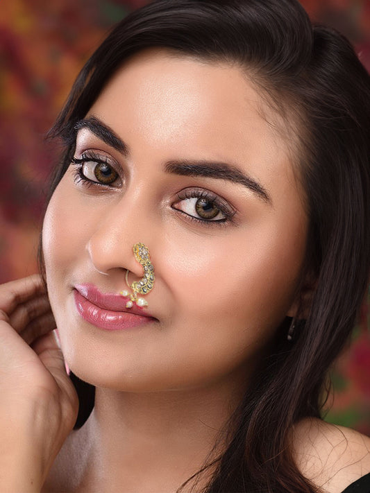 Set of 2 Gold Plated Artificial Stones & Beads Studded Non-Piercing Nosepin