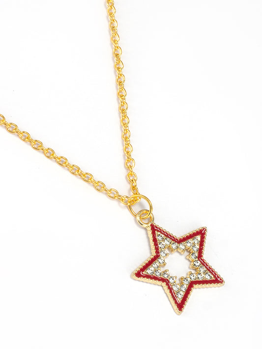 Gold Plated & Red Star Shaped Pendant & Studs Set