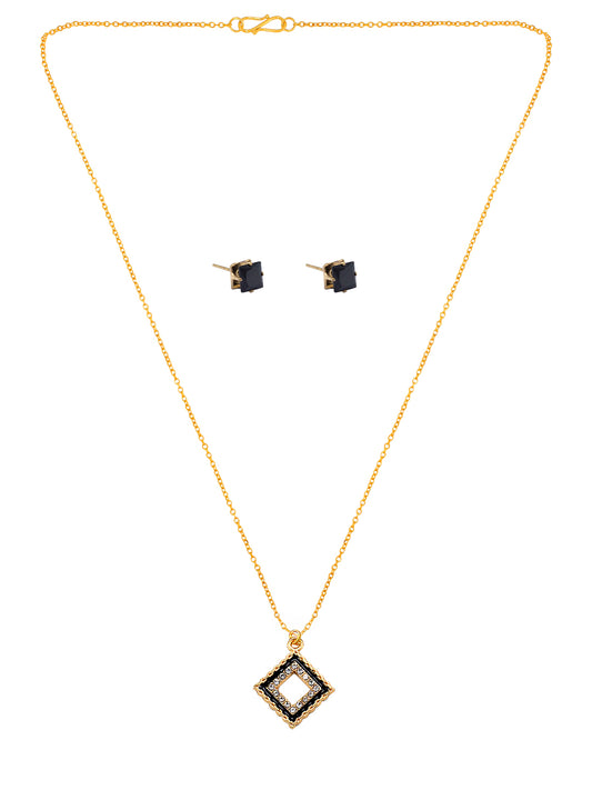Gold Plated & Black Square Shaped Pendant & Studs Set