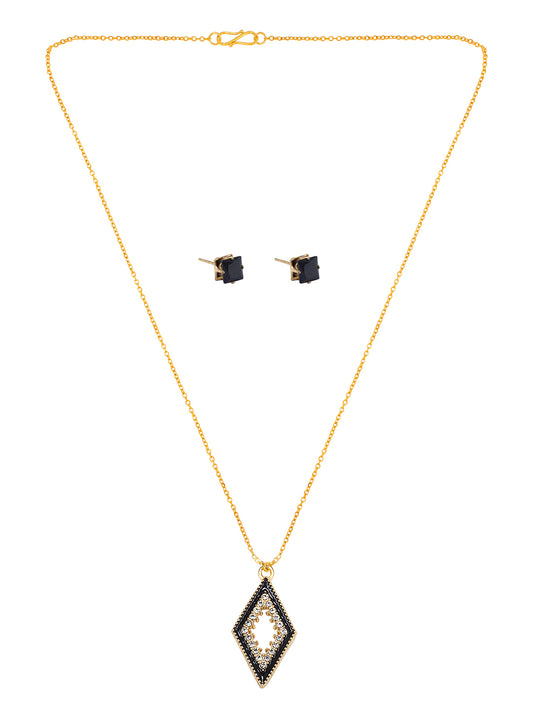 Gold Plated & Black Rhombus Shaped Pendant & Studs Set