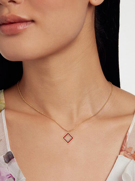 Gold Plated & Red Square Shaped Pendant & Studs Set