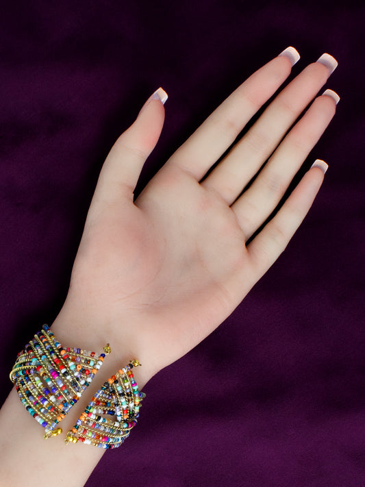 Gold Plated Multi-coloured Beaded Cuff Bracelet Gift For Girls